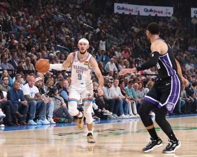 末節(jié)比賽,威少繼續(xù)三分命中幫助國王擴(kuò)大6分優(yōu)勢,雷霆連得5分追到僅差1分,拉文外線三分命中,引領(lǐng)一波8-2攻勢擴(kuò)大7分優(yōu)勢,亞歷山大、米切爾、多爾特與哈爾滕施泰因連續(xù)得分,雷霆一波11-0攻勢反超4分。拉文造犯規(guī)兩罰全中,維金斯助攻卡魯索命中關(guān)鍵三分,小薩博尼斯上籃得分,亞歷山大命中制勝三分,施羅德三分不中無力回天,最終雷霆逆轉(zhuǎn)戰(zhàn)勝國王豪取5連勝。